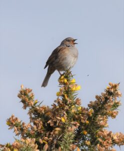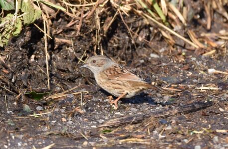 The Dunnock sings from perches in trees and hedges to defend its territory. It uses its thin bill to pick out invertebrates from the soil underneath hedges and bushes, hopping and flicking its wings as if just about to take flight.