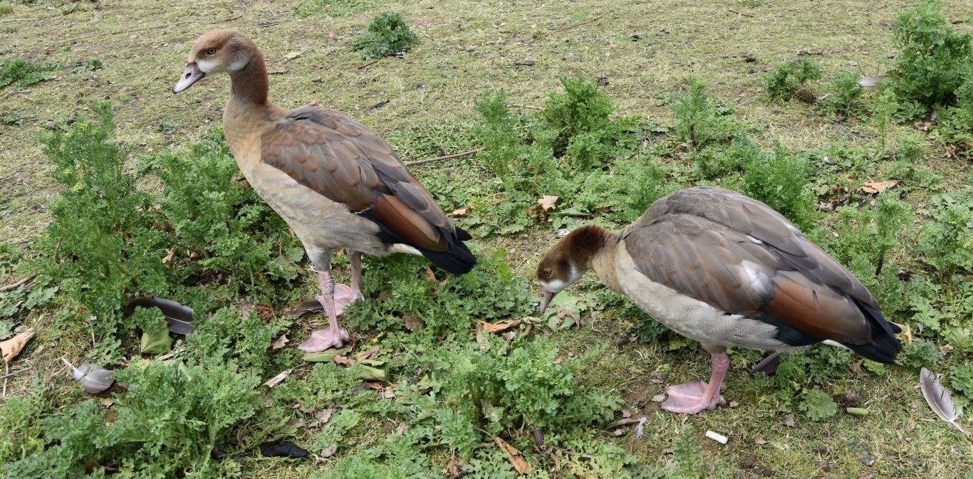 Native to sub-Saharan Africa, the Egyptian Goose is found around freshwater lakes and canals, where it feeds on grass and other vegetation.