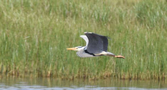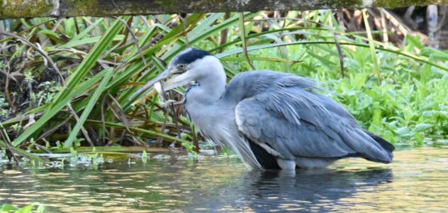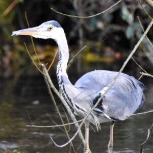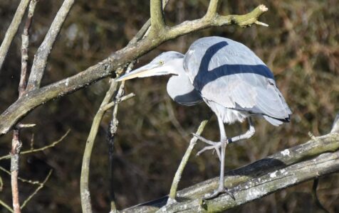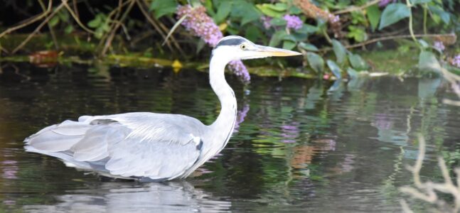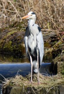 Grey Herons are nearly always found near fresh water where they hunt for amphibians, fish and small mammals. As they hunt they walk very slowly, poised to strike. They nest in colonies, often seen high in trees in woodland but also amongst reedbeds at the margin of Stillwater.
