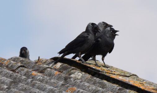 Jackdaws are very gregarious birds that flock together into large groups. They pair-bond for life and build loose nests in trees and crevices in old buildings. Jackdaws steal eggs and young from the nests of other birds, but mostly feed on a wide variety of seeds and invertebrates and carrion.